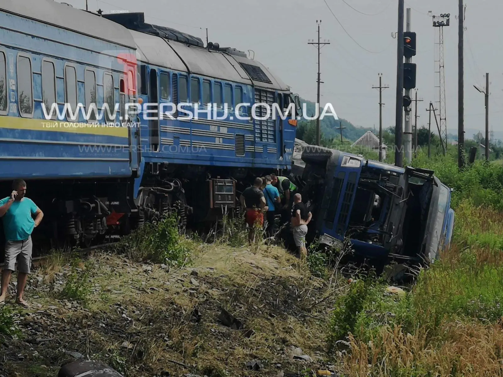 З‘явилися світлини з місця аварії у Рокосові за участі пасажирського потягу та вантажівки (ФОТО)